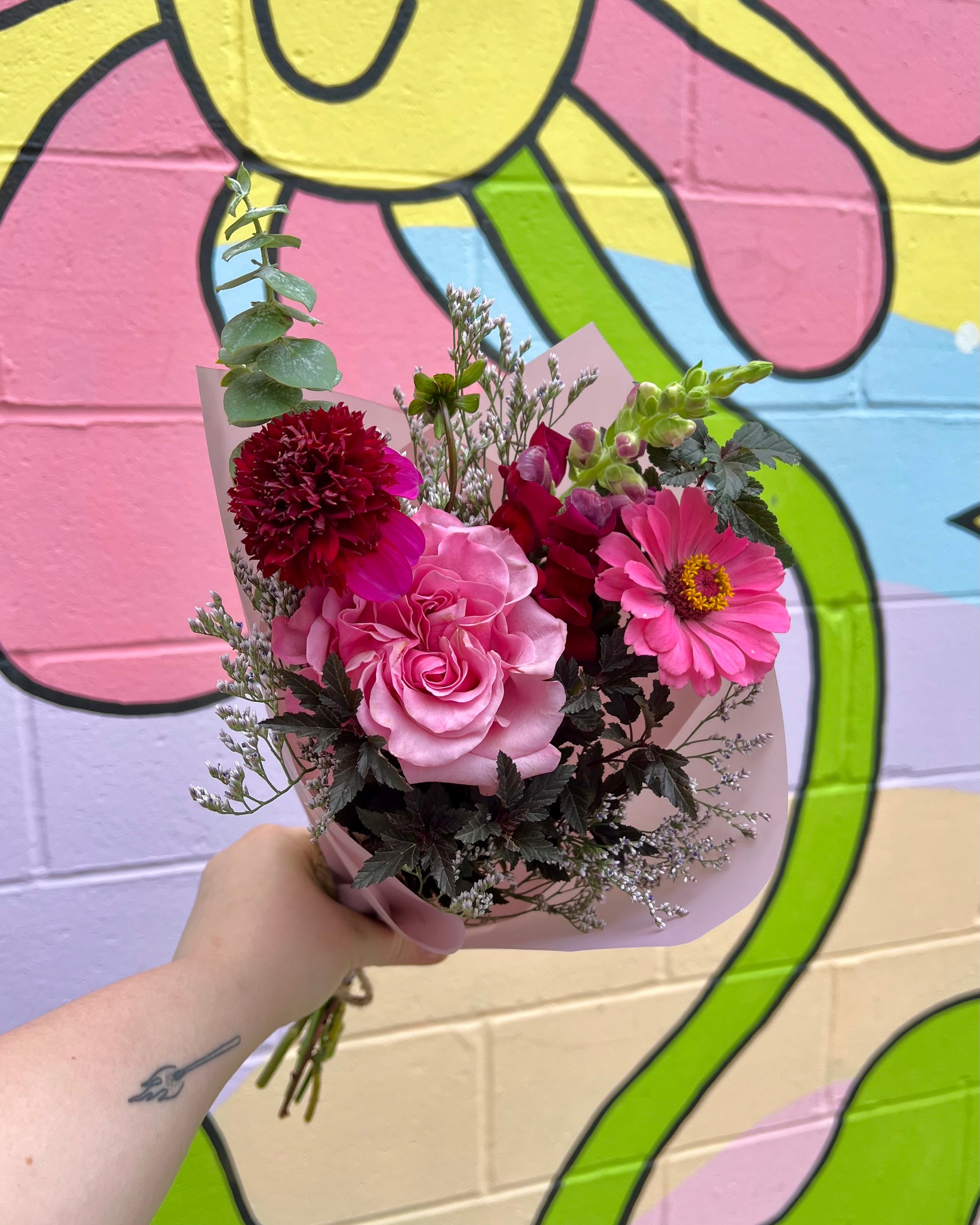 A rich, moody bouquet using burgundies, purples, and pinks.